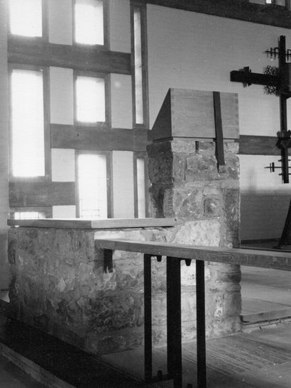 When St. Mary's was demolished archaeologists were surprised to discover many fragments of Viking-age sculptures, including pieces of stone crosses and burial markers. The new church of Holy Redeemer used other Norman (12th century AD) porch from the old church, as well as large parts of the south aisle. Pace used many of the newly discovered Viking-age sculptures. Some of these stones were built into the walls at Holy Redeemer, others were placed in features such as the pulpit. The high cross behind the altar used a well-preserved fragment of a Viking cross slab. Stones from St. Mary's were also taken to the church of St. Clement's on Scarcroft Road. Although Holy Redeemer is one of York's most recent churches, these stones link back to the earliest centuries of Christianity in the city.